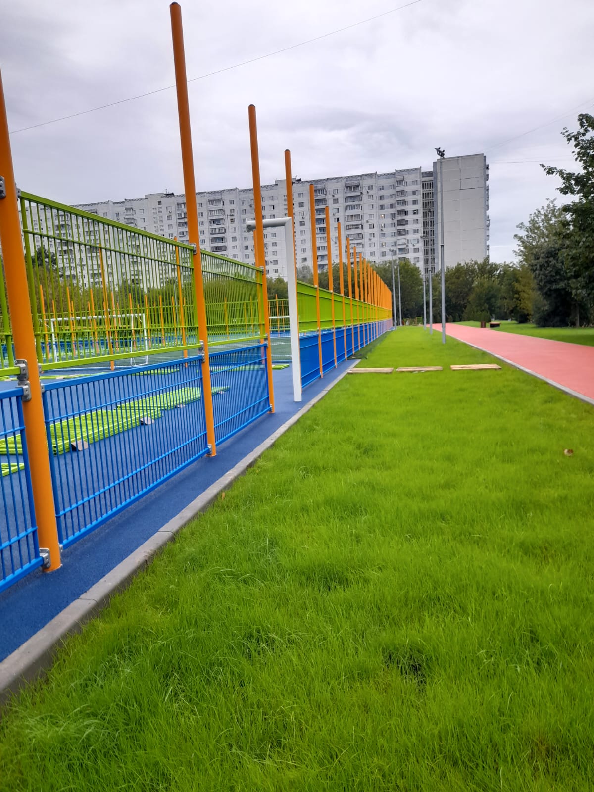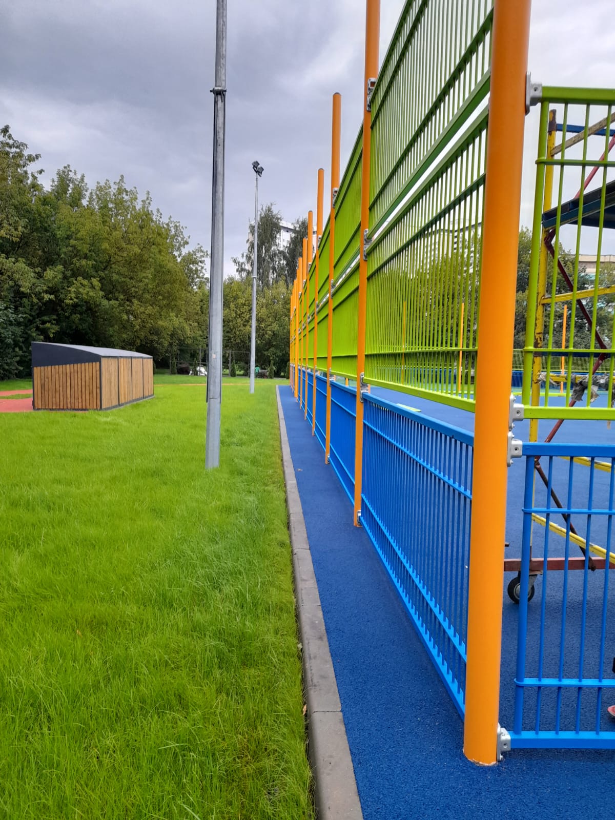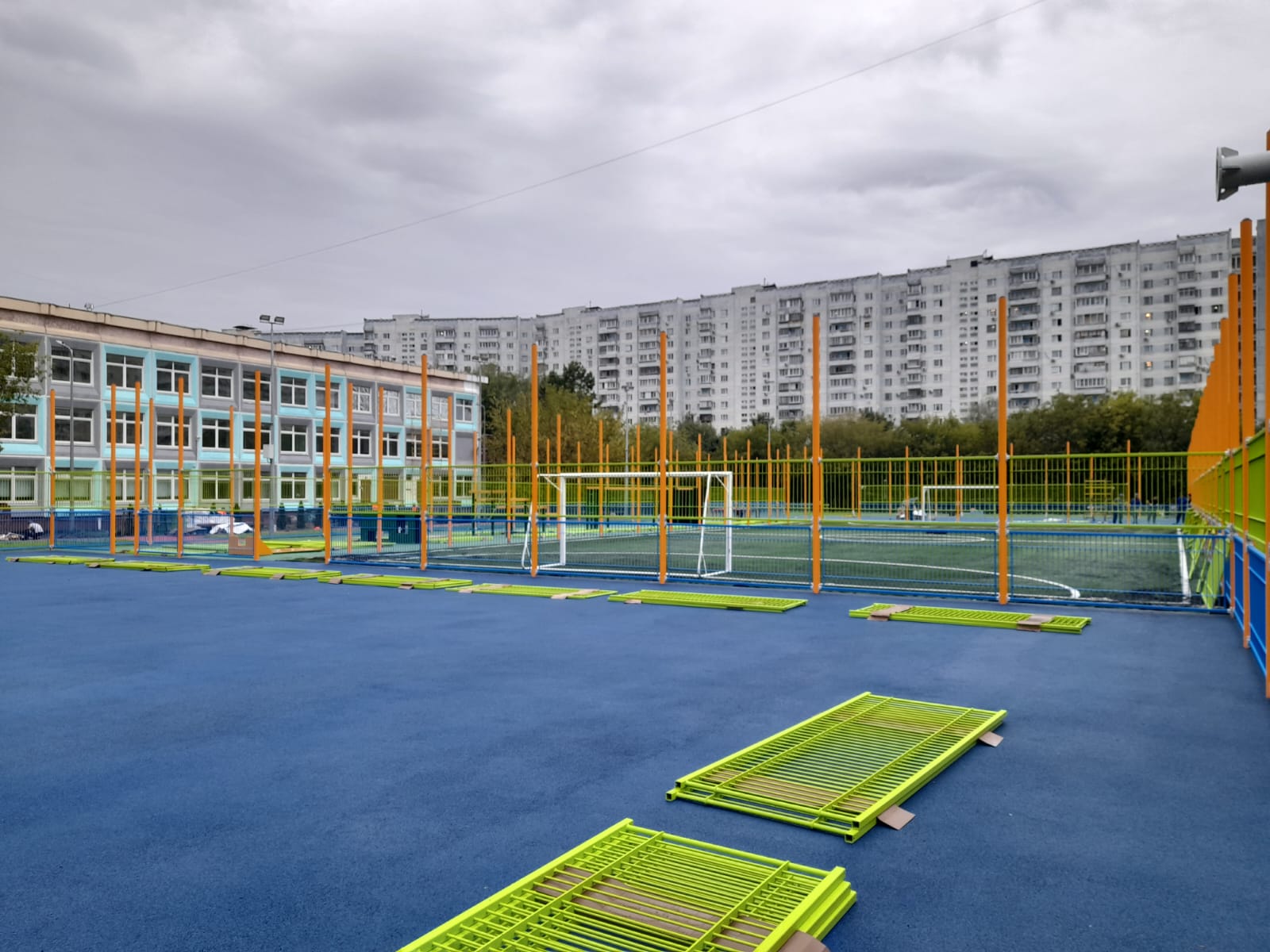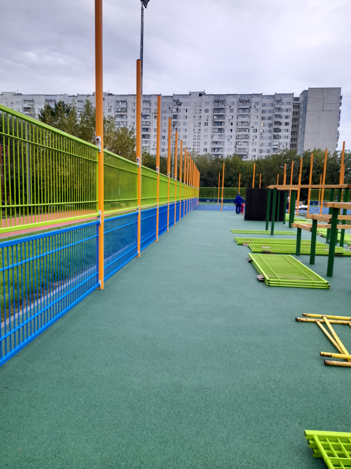 11.08.2023 монтаж секций спортивной площадки. Максуталиев Маратбек