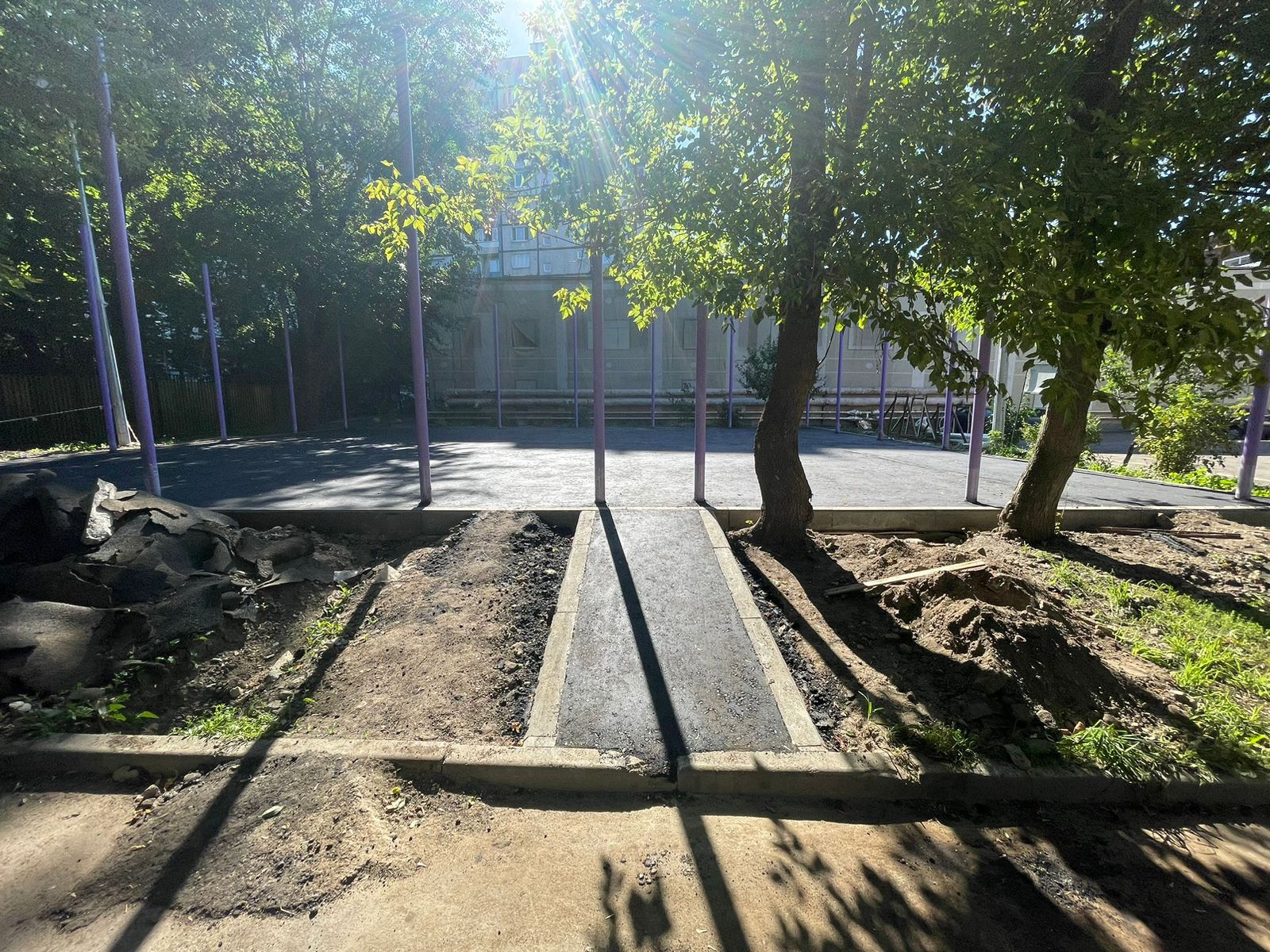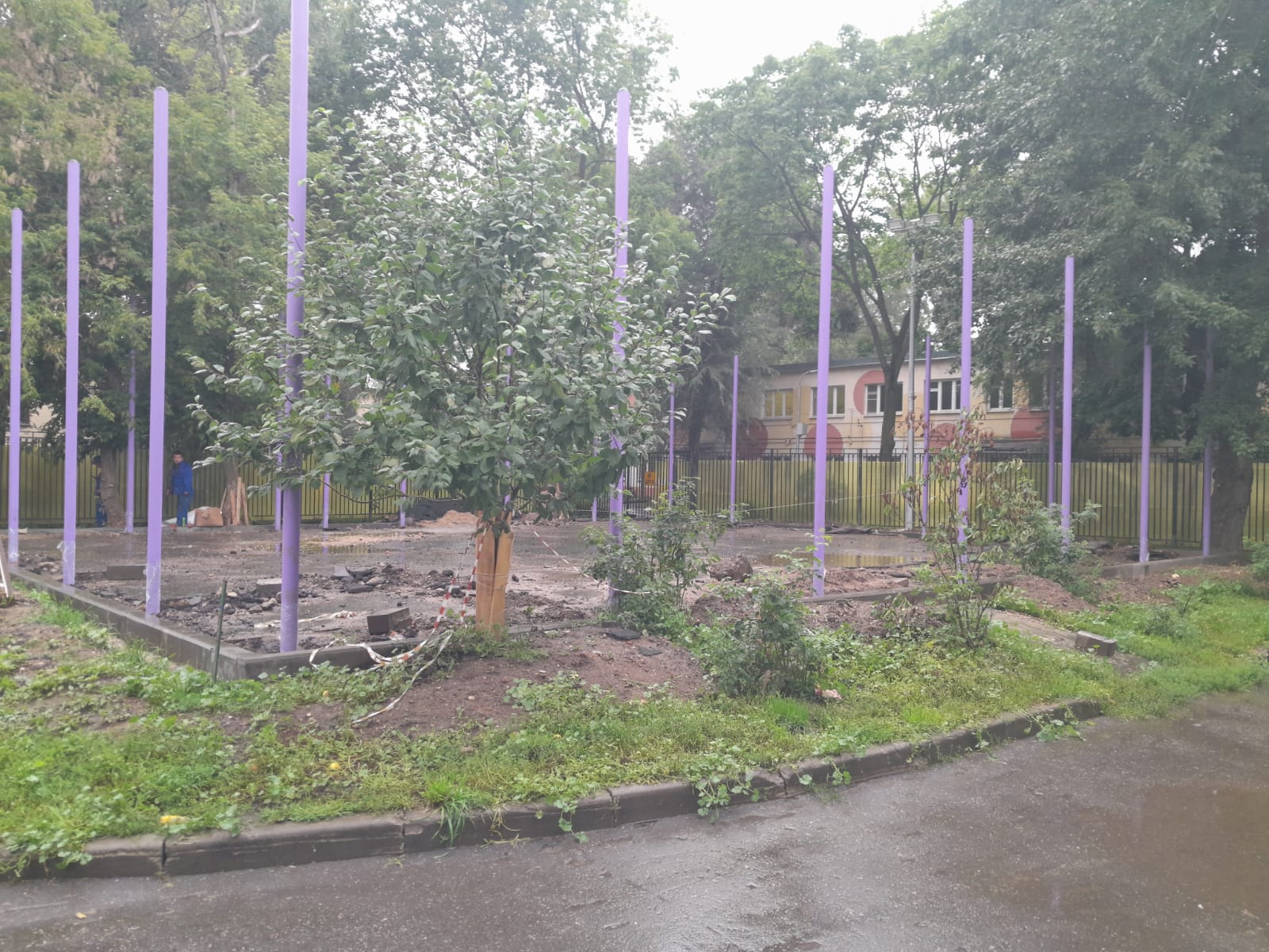 28.07.2023 установка столбов спортивной площадки. Максуталиев Маратбек