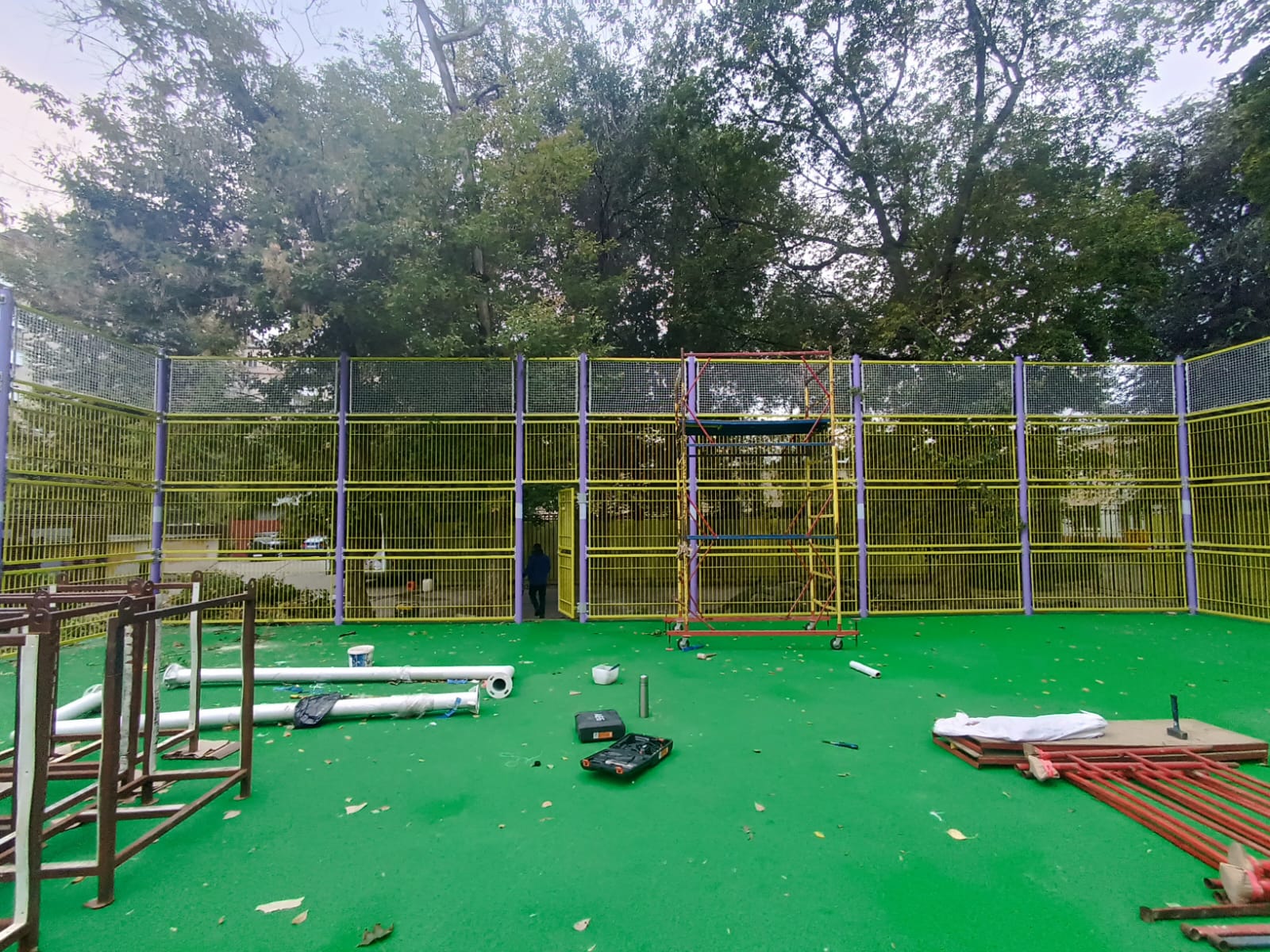 09.09.2023 монтаж секций спортивной площадки. Руслан
