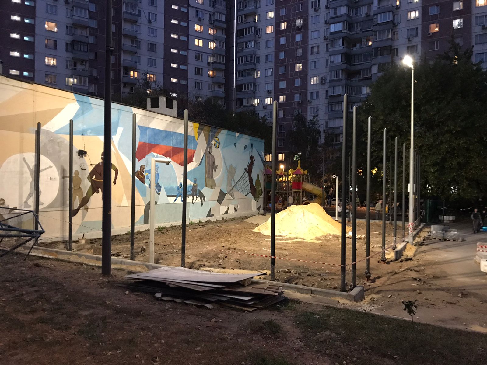 26.10.2023 монтаж секций спортивной площадки. Максуталиев Маратбек