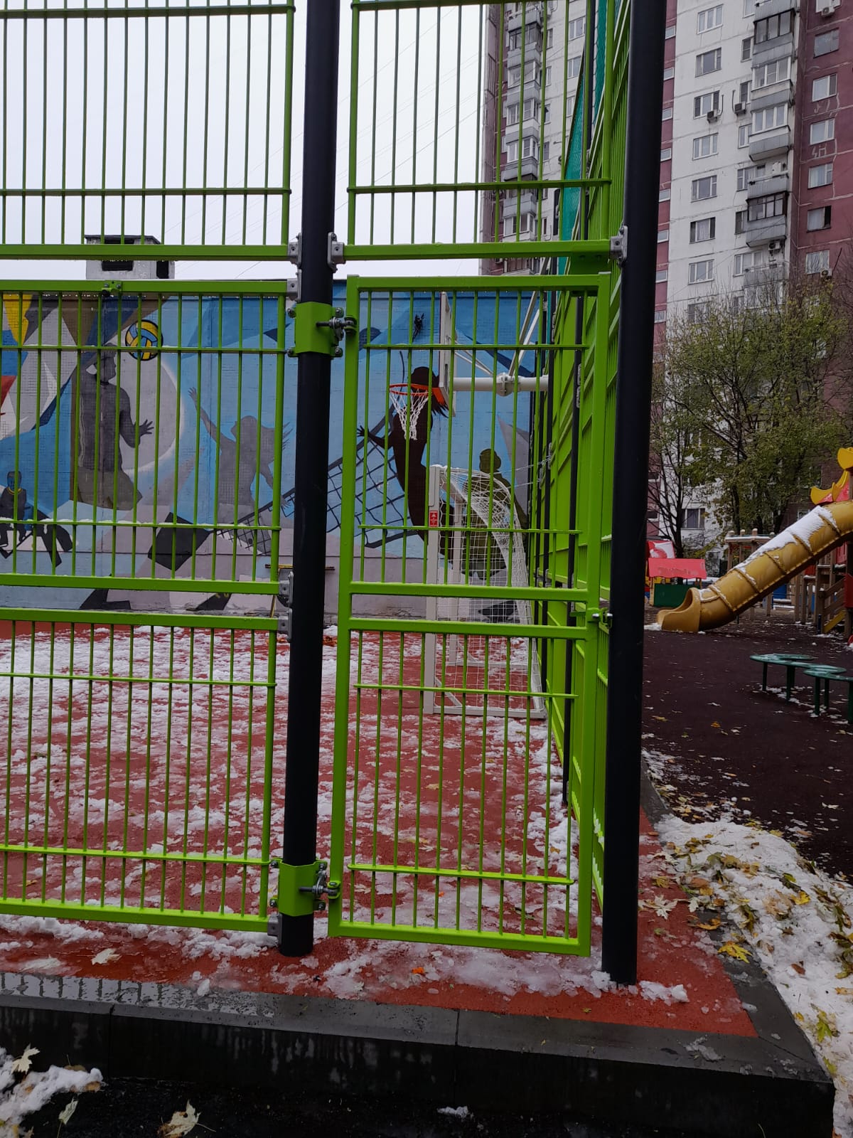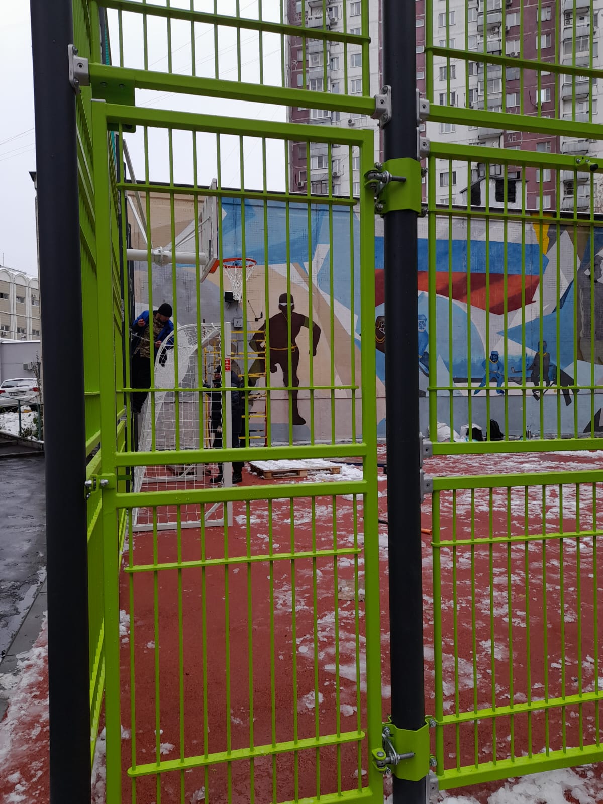 27.10.2023 монтаж секций спортивной площадки. Максуталиев Маратбек