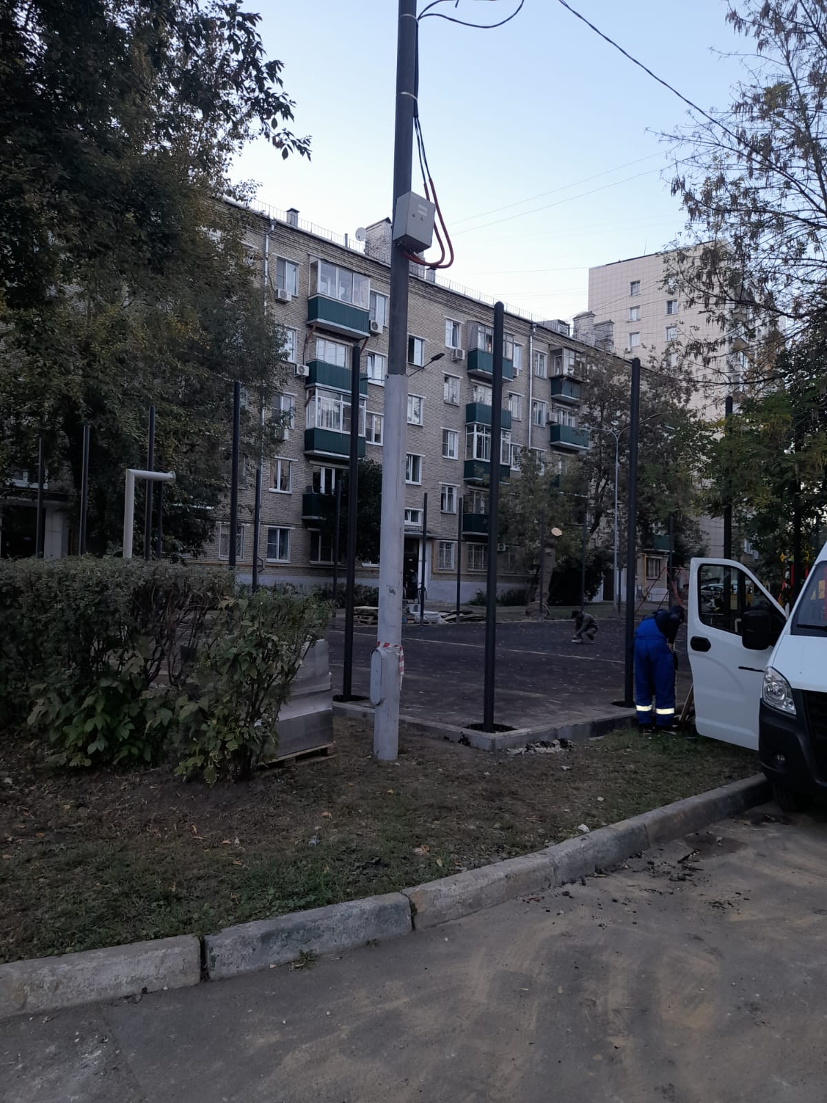 18.09.2023 установка столбов спортивной площадки. Максуталиев Маратбек