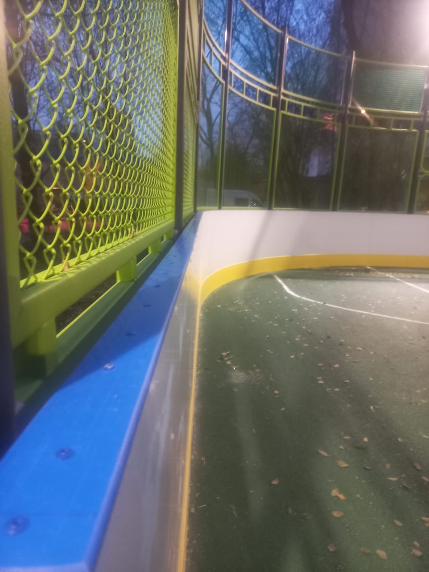 10.11.2023 монтаж стеклопластика на борт хоккейной площадки. Максуталиев Маратбек