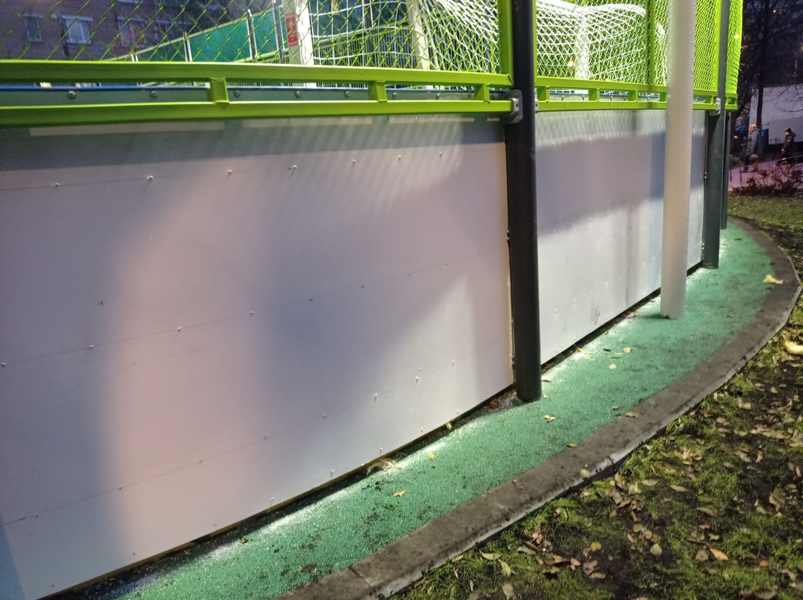 15.11.2023 монтаж стеклопластика на борт хоккейной площадки, установка минифутбольных ворот. Максуталиев Маратбек