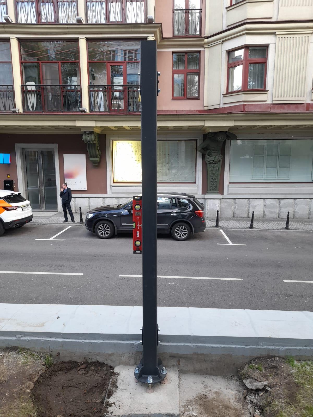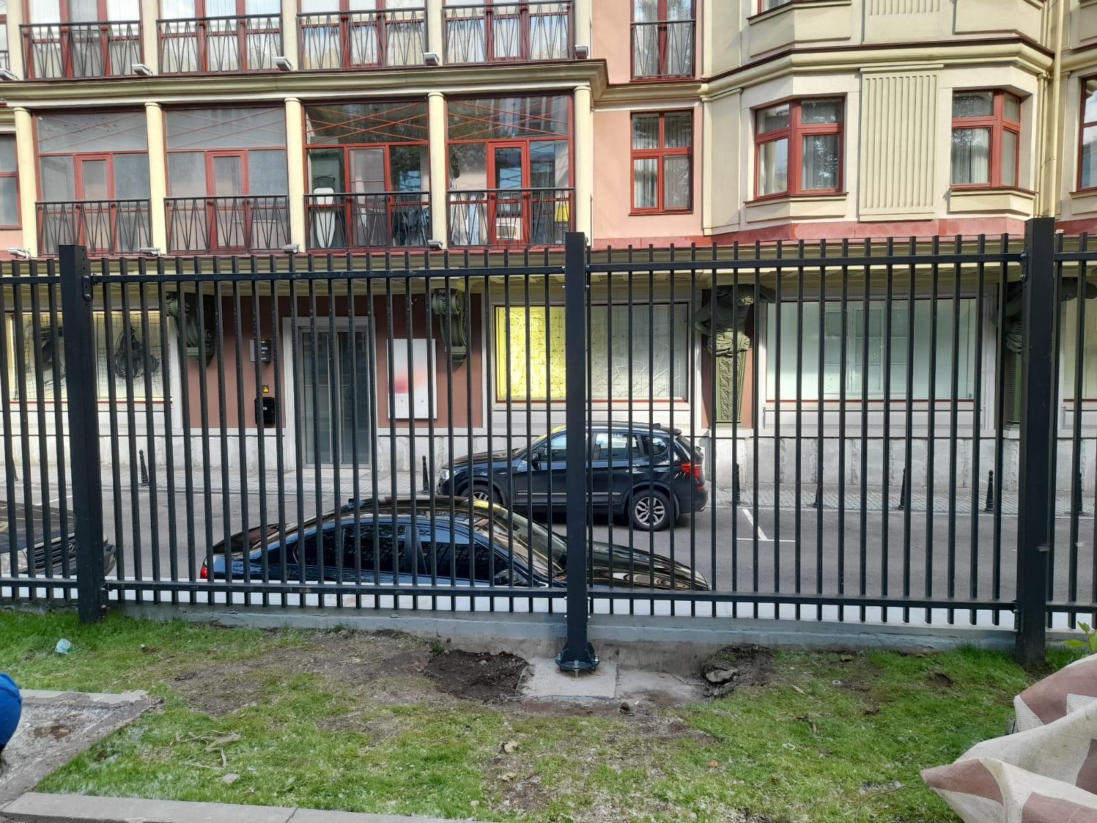 Установка стоек и секций ограждения.