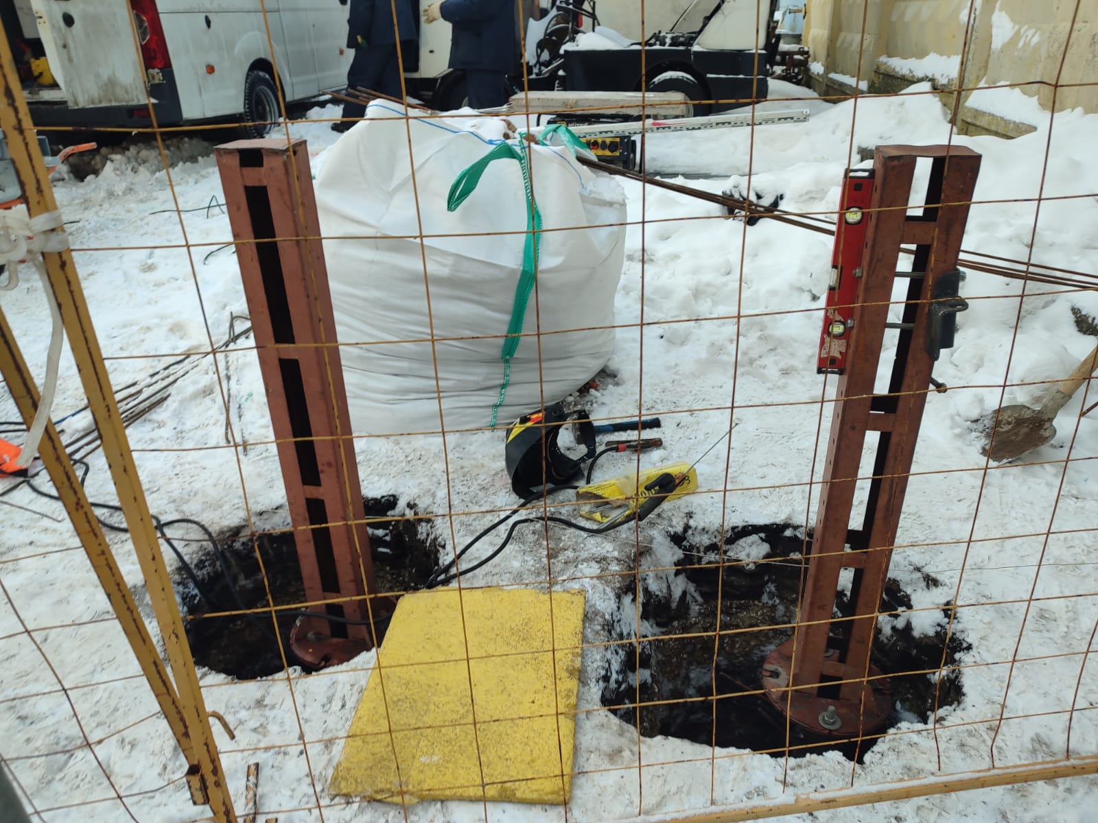 02.12.2023 монтаж ограждения. Установка фундаментных закладных. Алмаз