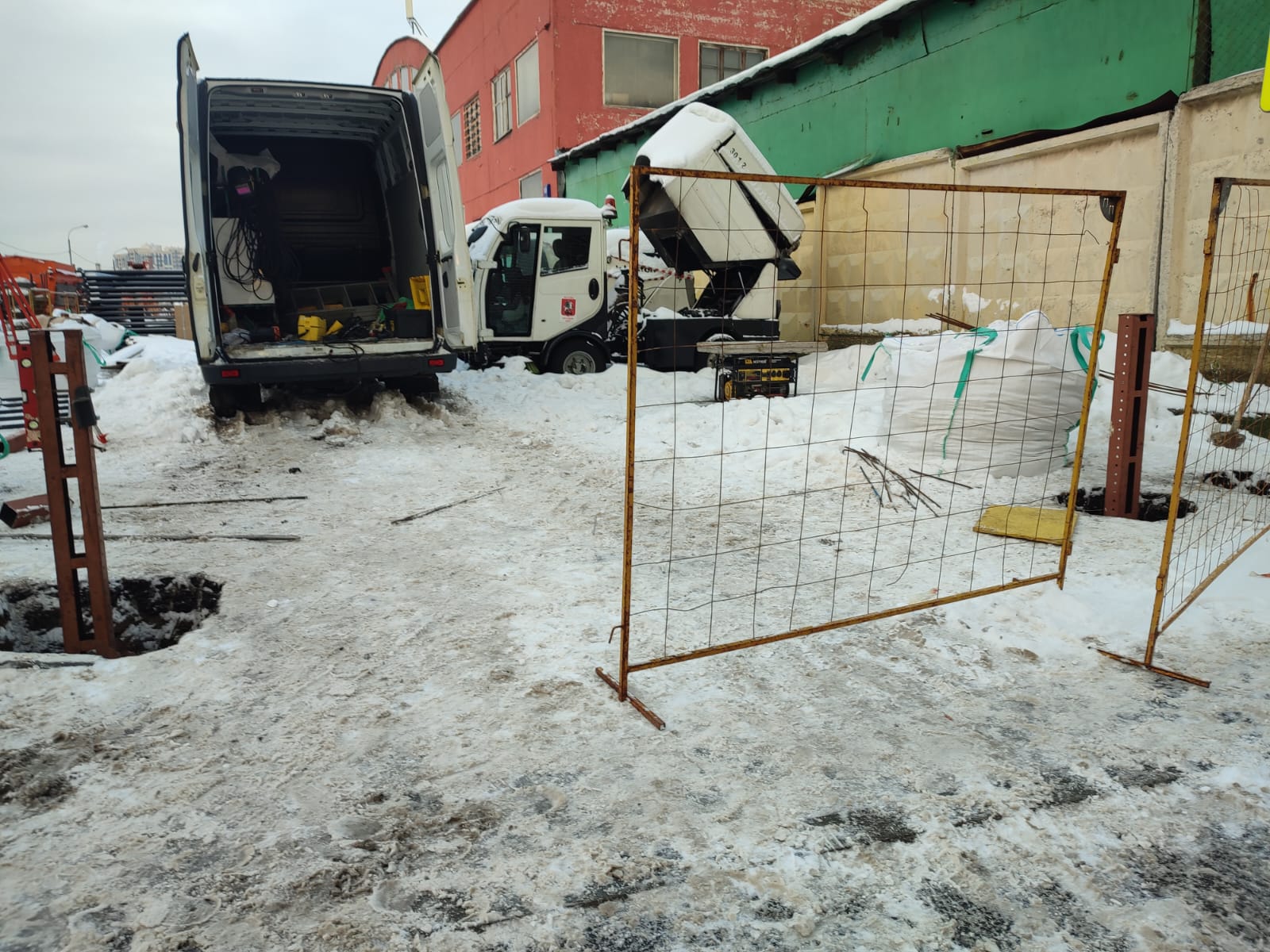 28.11.2023 демонтаж ограждения, копка ям, установка фундаментных закладных. Алмаз