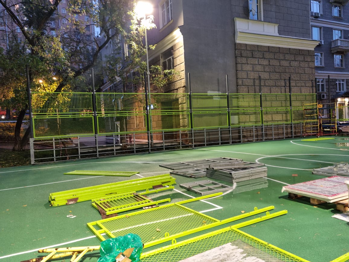 21.10.2023 монтаж хоккейного борта. Монтаж секции хоккейной площадки. Руслан