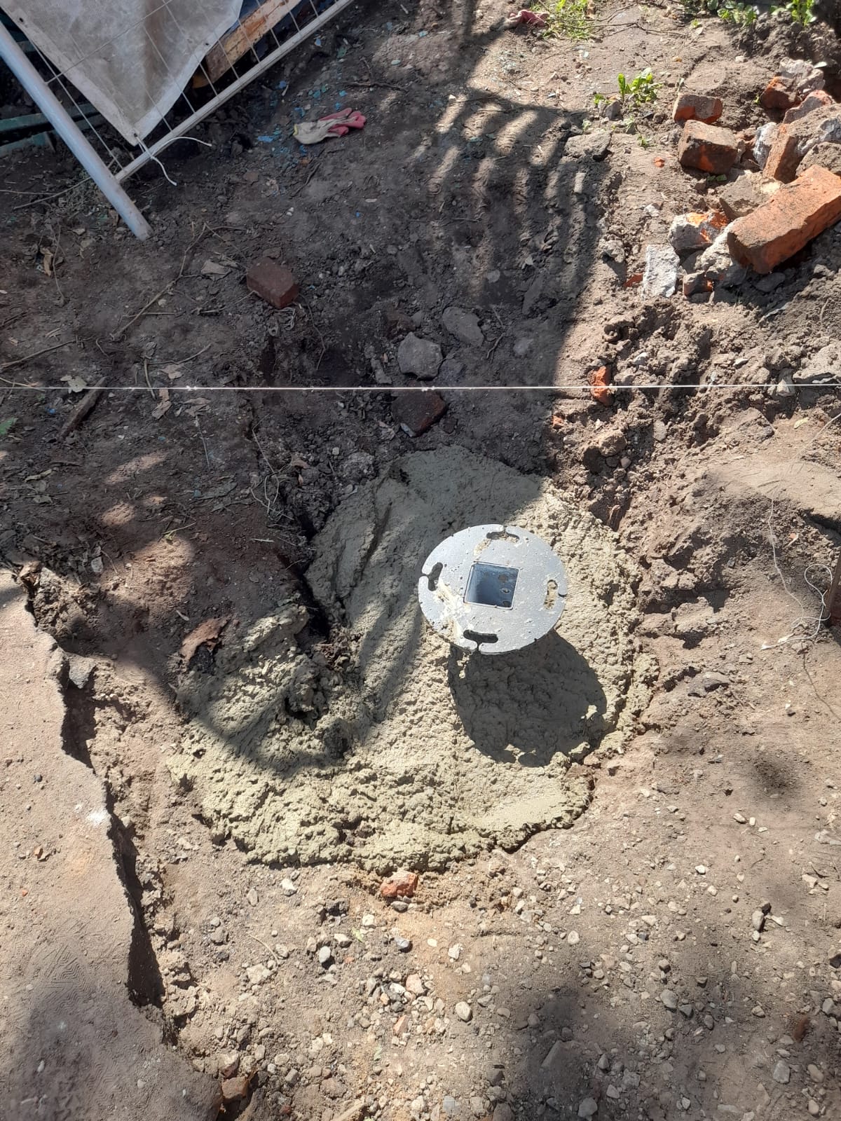 20.07.2023 копка ям, установка фундаментных закладных ограждения периметра. Руслан